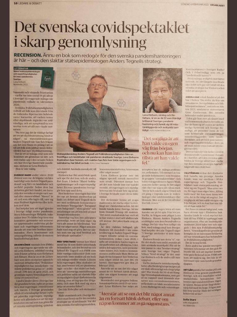 Fredrik Elgh på Twitter: ”Här en insiktsfull recension av Lena Einhorns senaste bok med andra ögon än de inhemskt svenska. Vasabladet 220206. Sprid den, ni som vill och kan.”