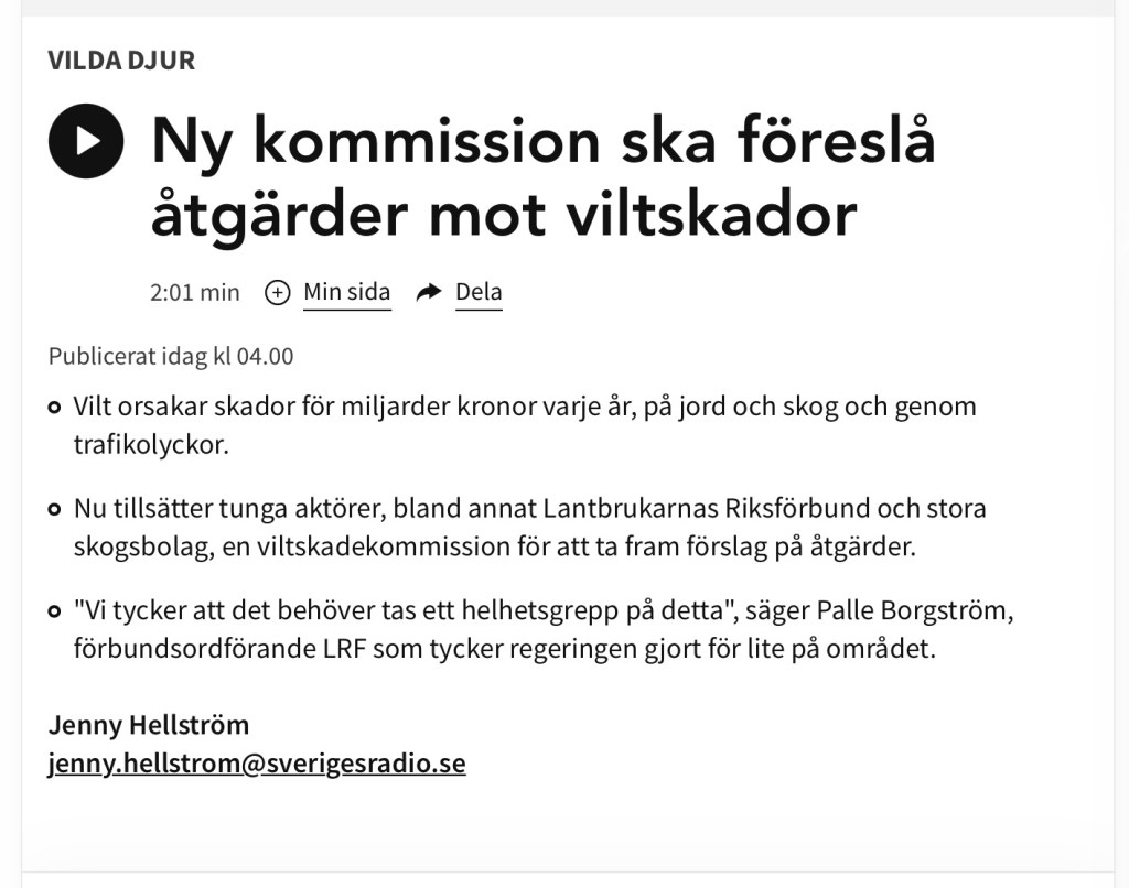 Morgonekot nämnde att det skall tillsättas en kommission som skall föreslå åtgärder mot viltskador i skogar och på åkermark.