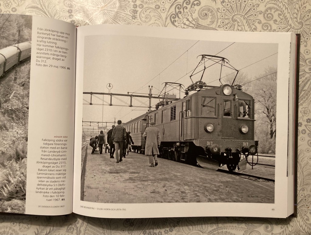 Jag hittade en alldeles nyinkommen bok på Biblioteket. Den är helt fylld av D-lok, dessa SJ’s gamla trotjänare. Bland alla fotografier fanns det ett från Falköping Södra, stationen där elever på Läroverket, bosatta i bl.a. Mullsjö och Tidaholm, klev av tåget på morgon (och på på eftermiddagen).