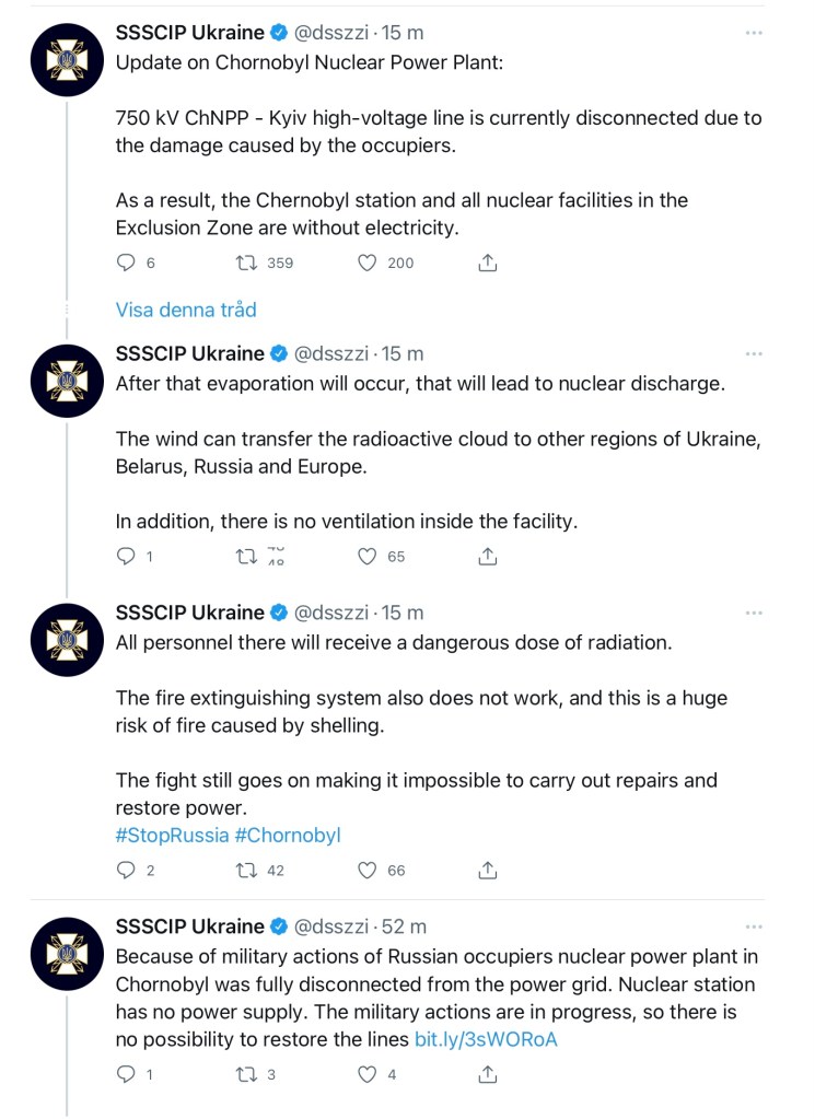 SSSCIP meddelar att kylningen av det utbrända kärnavfallet i Tjernobyl har slutat att fungera Dela det här: Klicka för att dela på X (Öppnas i ett nytt fönster) X Klicka för att dela på Facebook (Öppnas i ett nytt fönster) Facebook Gilla Laddar in … Relaterade