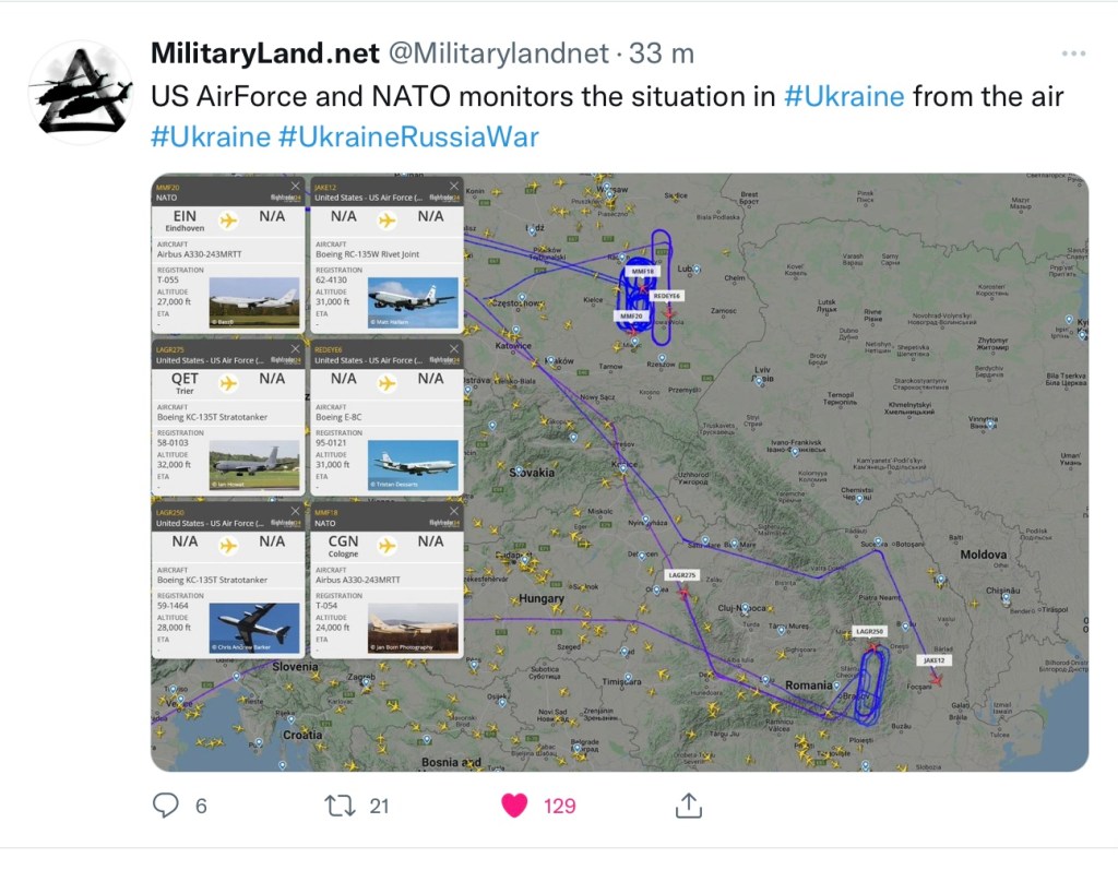 Nära gränsen till Ukraina och Moldavien cirkulerar NATO’s spaningsplan