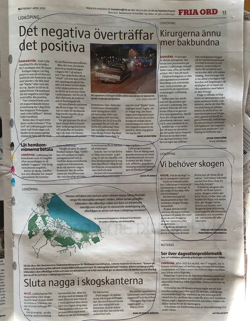 Ilskna insändarskribenter i dagens NLT Många lidköpingsbor visar sin avsky mot den skogsskövling och den raggarkultur som har blivit stadens signum Dela det här: Dela på X (Öppnas i ett nytt fönster) X Dela på Facebook (Öppnas i ett nytt fönster) Facebook Gilla Laddar in … Relaterade