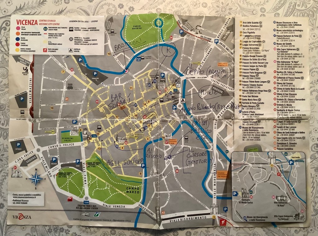 Kartan är som synes väl använd. De bästa Trattoriorna är såklart markerade.