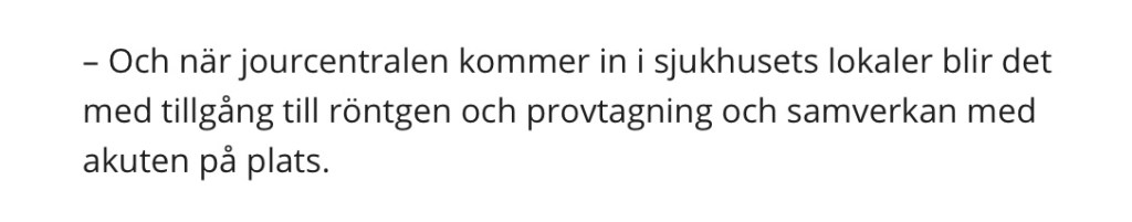 Och hur var det nu med det där positiva som uttrycktes 2019 vid återflytten till Sjukhuset: Det blir tillgång till röntgen, provtagning och samverkan med Akutens personal.
