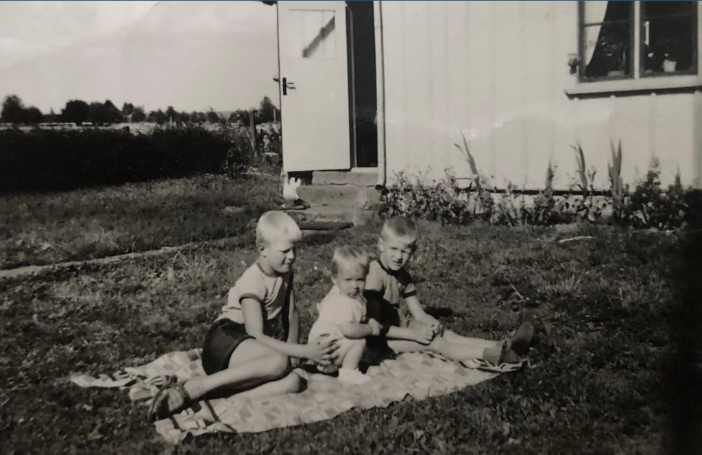Brorsan, kusin Anders och bloggaren (i nämnd ordning) sittandes utanför köksingången på Båltorp, i Sätuna socken.