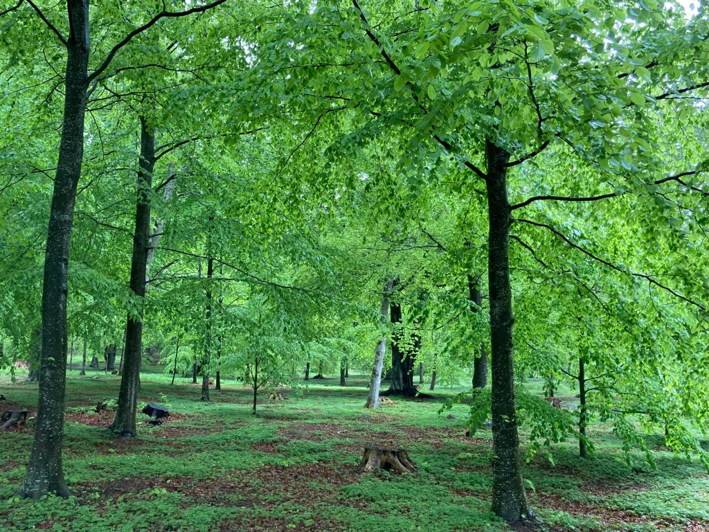 Att gå ut i bokskogen efter det härliga vårregnet, titta till Lusthuset och få med sig en räkmacka hem – det är ju det som är livet på en pinne!!