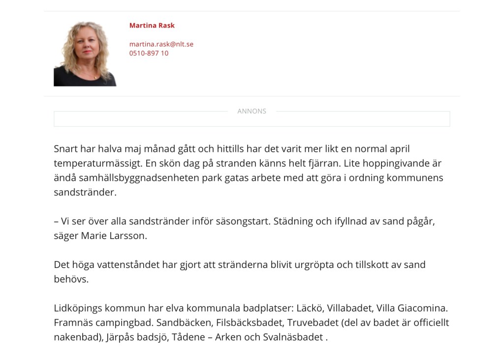 Det där med tillsnyggning och tillskott av sand skulle behövas även i år, inte minst vad gäller stranden vid Skogshyddan/Villa Giacomina.