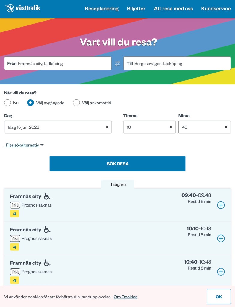 Och det är verkligen många som reser kollektivt nu. När vi satt och väntade på lokalbussen på Resecentrum igår (när vi klev ut från Willys gick precis bussen till Sjölunda och för att slippa sitta och vänta i 30 min vid Framnäs C tog vi bussen in till Resecentrum med våra kassar) såg vi att det var otroligt många väntande på bussar och tåg. Som exempel stod det säkert 50 personer och väntade på bussen från Trollhättan mot Skövde…