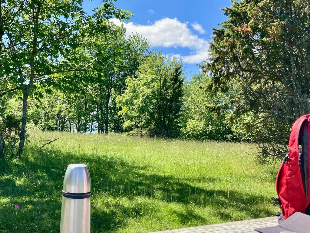 Det splitters nya vindskyddet på Kinnekulle ligger ca 300 meter söder om Utsiktstornet, och 300 meter över havet.