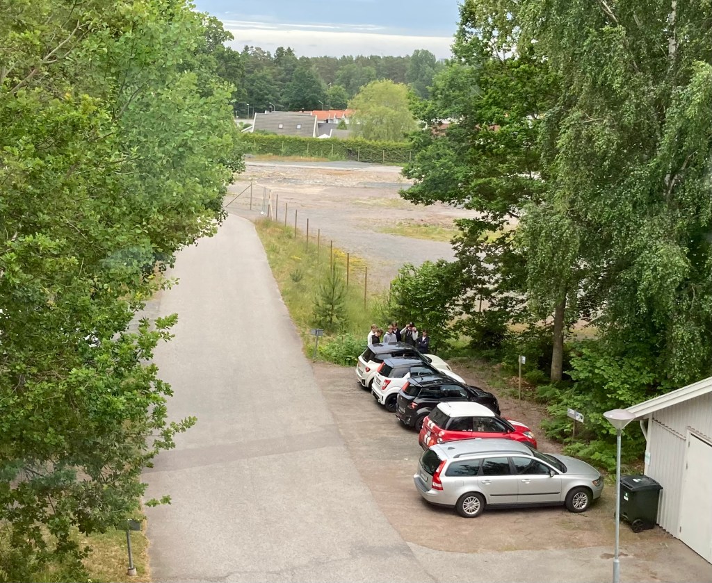 När vi satt på balkongen ikväll rullade plötsligt fyra mopedbilar in till vår gästparkering. Strax därpå kom det sju killar – gåendes.