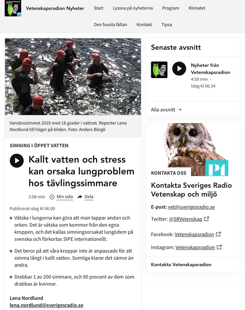 Många av de som deltar i Vansbrosimningen risker att drunkna – inifrån Ett 50-tal deltagare varje år drabbas av lungödem, utan att ha diagnosen hjärtsvikt. De flesta är kvinnor. Dela det här: Dela på X (Öppnas i ett nytt fönster) X Dela på Facebook (Öppnas i ett nytt fönster) Facebook Gilla Laddar in … Relaterade