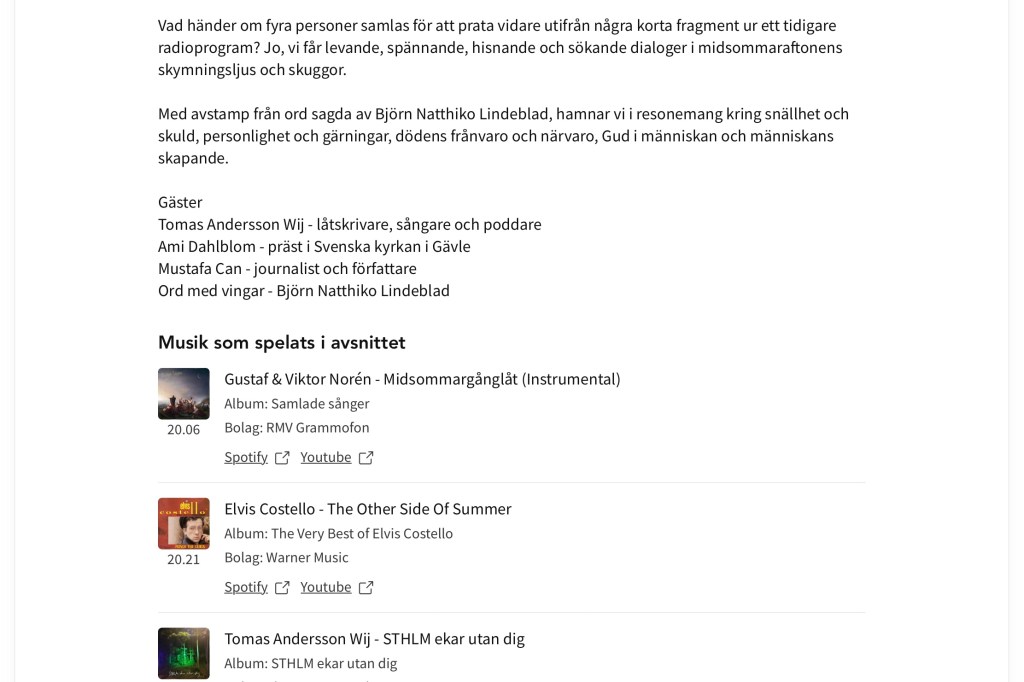 Det är mest skit på TV ikväll, typ Bingolotto. Men radion sänder ett riktigt bra program. Lyssna gärna på det! Förnöjsamhet, förundran, tacksamhet… Dela det här: Dela på X (Öppnas i ett nytt fönster) X Dela på Facebook (Öppnas i ett nytt fönster) Facebook Gilla Laddar in … Relaterade