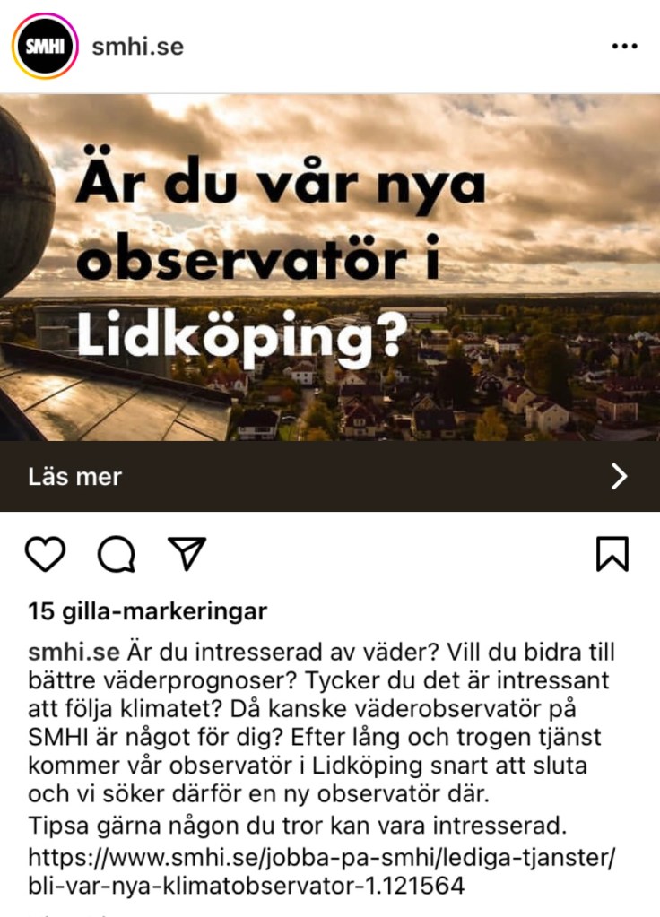 Därtill borde det blåsas nytt liv i väderstationen uppe på Västerplana. Den saknas oss!!