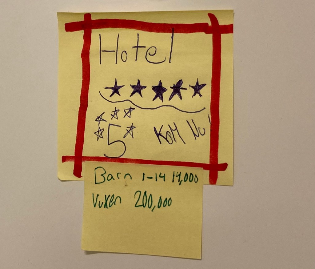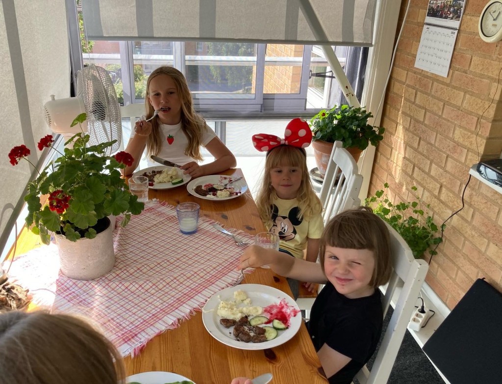 Fyra barnbarn till bloggaren är nu på plats på pensionatet.