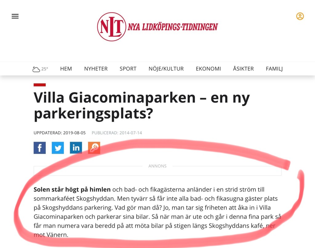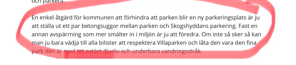 Dessvärre tycks kommunen sakna vilja att skydda parken från obehörig fordonstrafik.