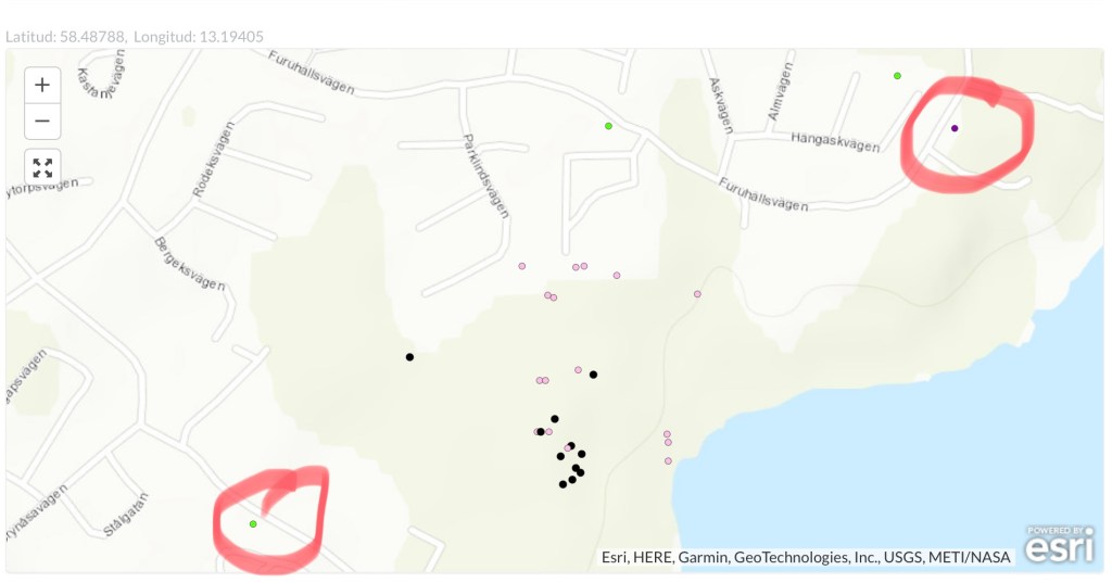 Idag har jag prickat in det stora beståndet av blomsterlupin på Furuhällsvägen och parkslidens växtplats på Gamla Läckövägen (i Villalia).