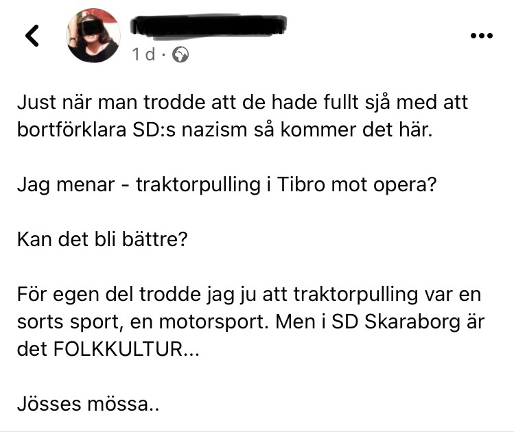 Jösses mössa!!! Kulturskymning råder i SD-land: Dela det här: Dela på X (Öppnas i ett nytt fönster) X Dela på Facebook (Öppnas i ett nytt fönster) Facebook Gilla Laddar in … Relaterade
