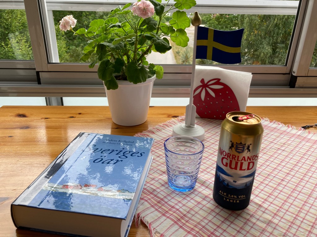 Förutom öl har bloggaren lagt fram den tjocka boken om Sveriges alla öar, även obebodda sådana. Till en sådan kan han och hustrun dra om bandhundarna släpps lösa efter valet.
