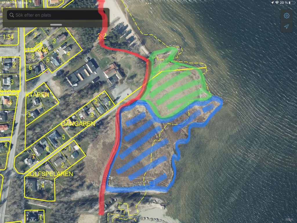 Röd färg = strandpromenad