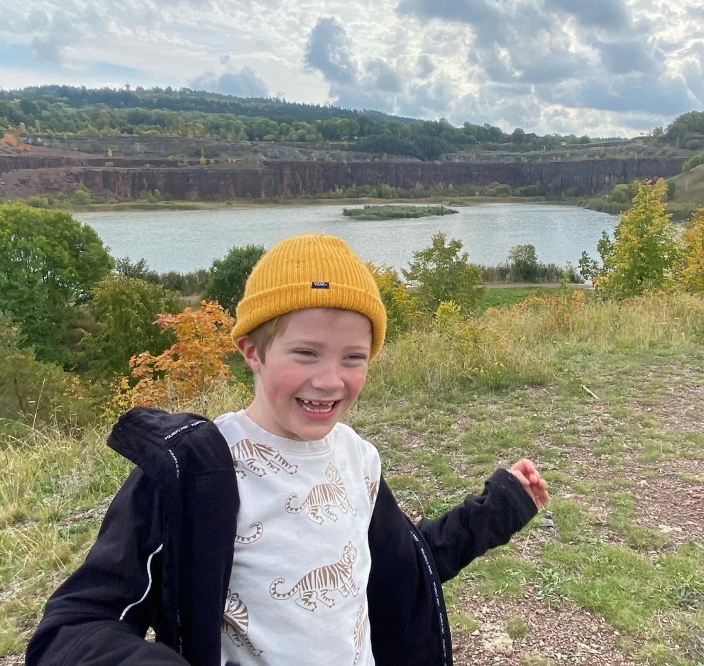 Erland med mamma är på besök. Första utflykten gick till Munkängarna och det stora kalkbrottet. Vi hittade några förstenade bläckfiskar, med 400 miljoner år på nacken.