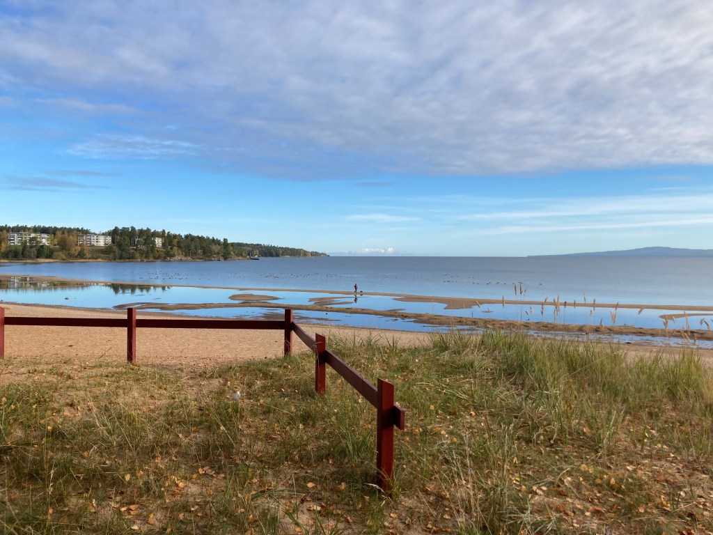 Det är nästan så att man hoppas att den nya strandlinjen vid Skogshyddan/Villabadet etablerar sig permanent. De som gillar att steka sig får massor med ny yta att lägga sig på, och de som vill bada slipper alla de stenar som har varit utmärkande för sjöbottnen närmast land: