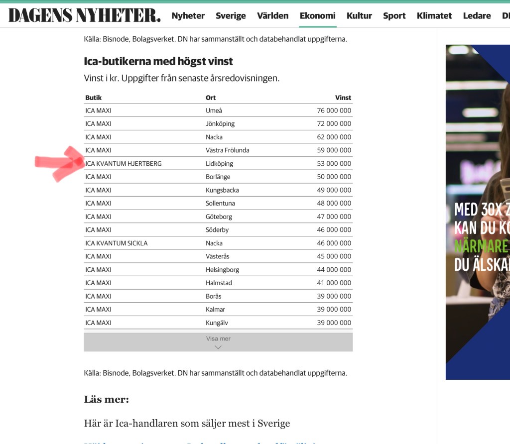Skulle inte vinstbegäret kunna hållas tillbaka när många har det så knapert? Men siffrorna avser 2021. I år har förhoppningsvis lågpriskedjor som Willys och Lidl tagit över en hel del av kunderna.