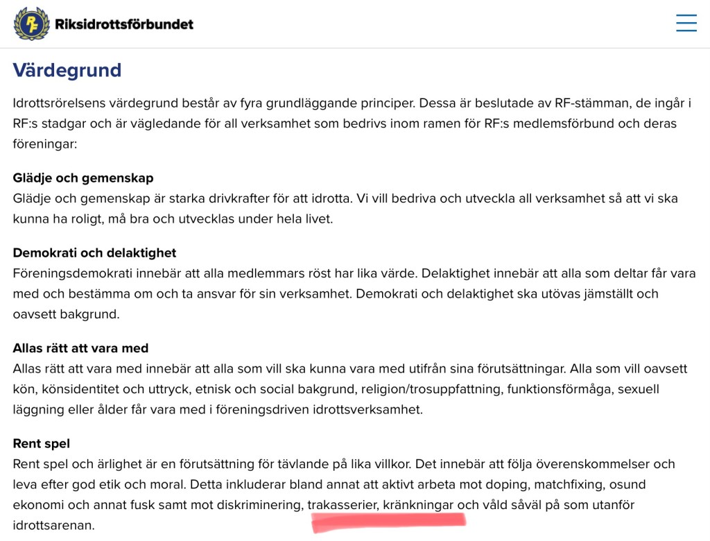 Vad gör Riksidrottsförbundet åt de som inte lever upp till värdegrundens principer?