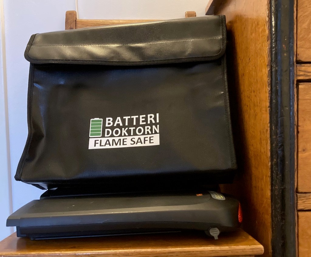 Den som oroar sig för att batteriet till (egen eller någon grannes) elcyklel skall fatta eld kan lämpligen ta och lugna ned sig.