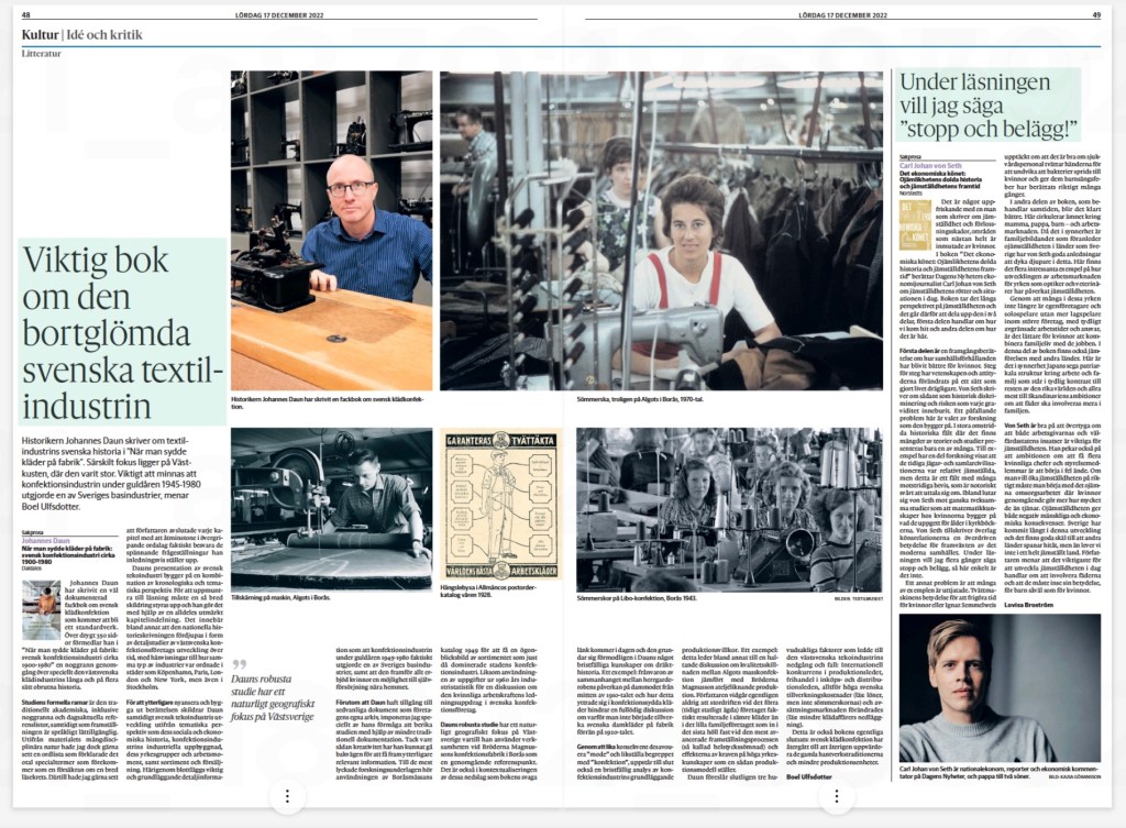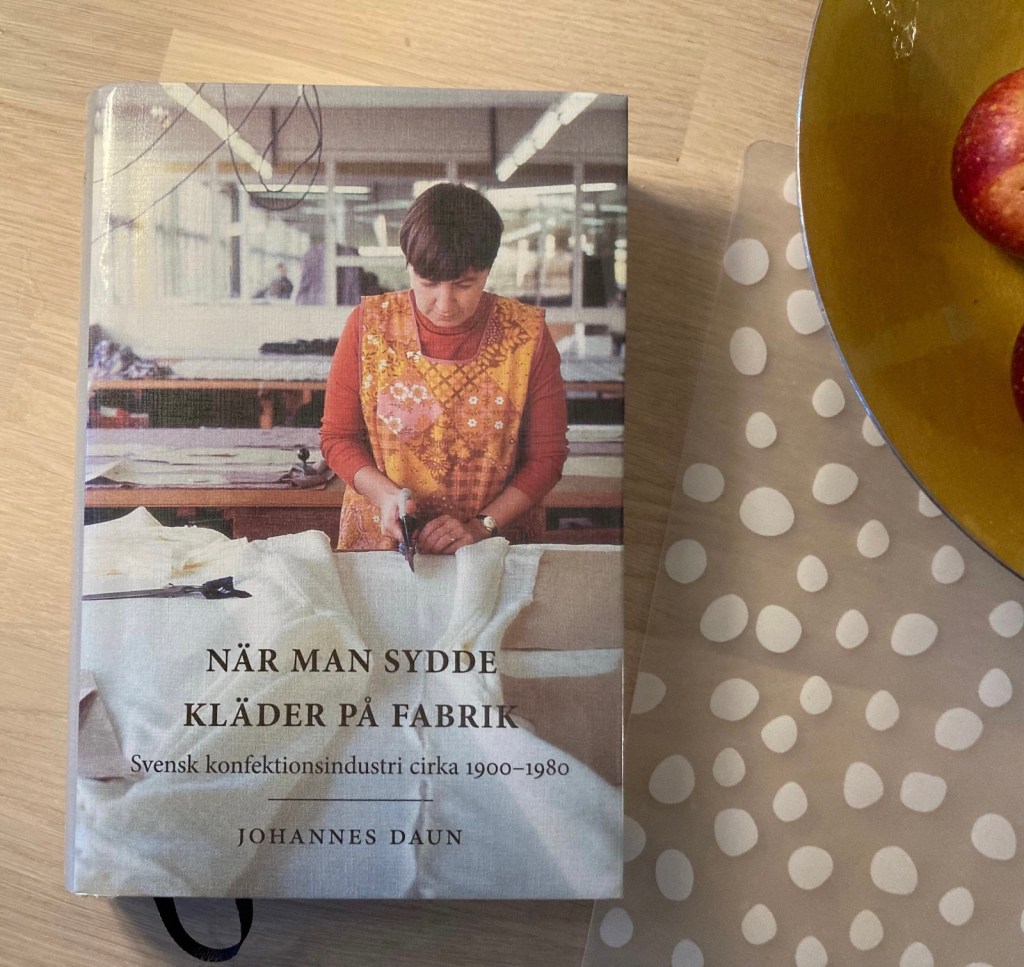 Och då skyndade jag mig till Biblioteket för att leta efter den nyutkomna bok artikeln handlar om, dvs ”När man sydde kläder på fabrik” av Johannes Daun.