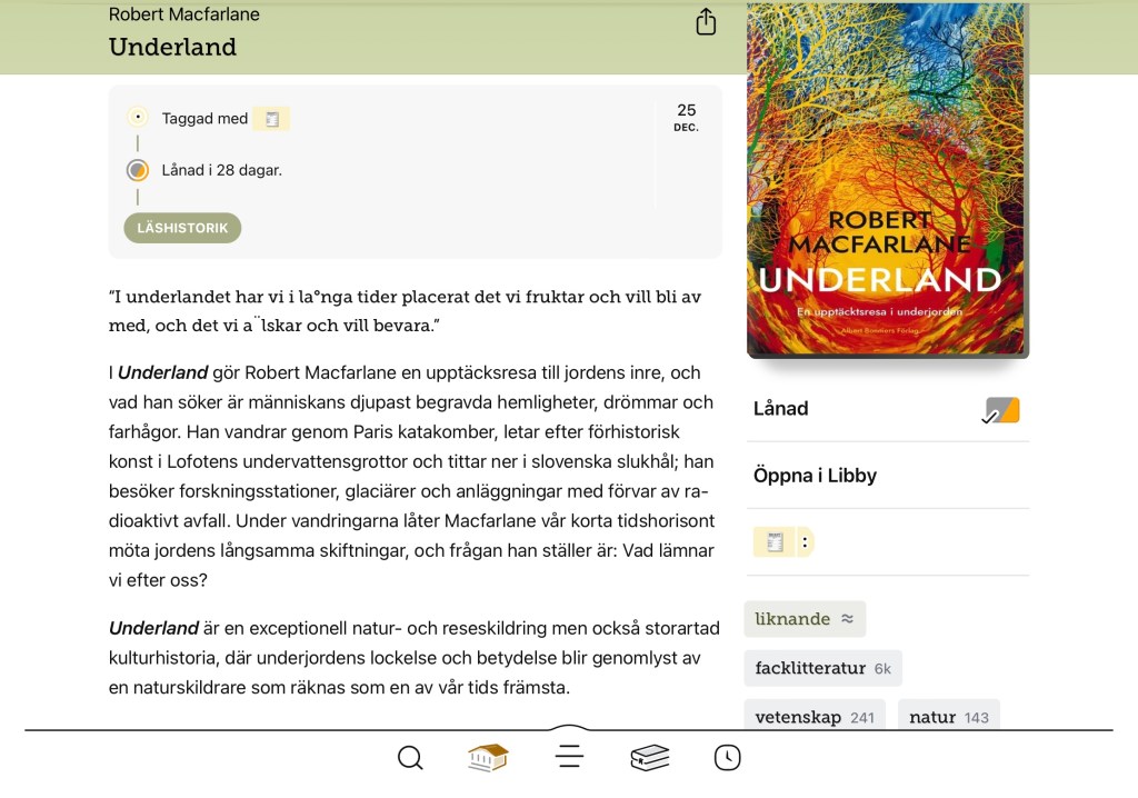 Det är en både svindlande och vidunderlig upplevelse att följa Macfarlane ner i de djupa tidslager som ligger under och bortom det vi vanligtvis är förmögna att föreställa oss. Så här ser antropocen, den värld som människan har skapat, ut i praktiken: en epok där ofattbart stora och ofta skrämmande förändringar sker på en planetär skala och där både tiden och rummet har hamnat gravt ur led. ”Saker som borde ha förblivit begravda för alltid börjar komma upp till ytan”, skriver Macfarlane när han blir vittne till hur en svart pyramid av uråldrig is stiger upp ur djupen vid den smältande Knut Rasmussen-glaciären på Grönland.