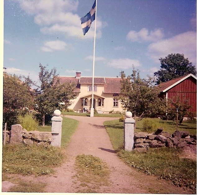 Det här fotot togs när morfar Simon fyllde 80 år. Den observante ser brädan som ligger invid ena grindstolpen. Den drogs fram när korna skulle in och mjölkas (eller efter mjölkedags).