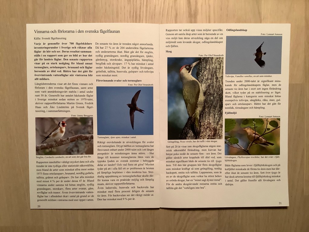 Med ”på köpet” från Biblo fick jag UVEN, om vinnare och förlorare i den svenska fågelfaunan: