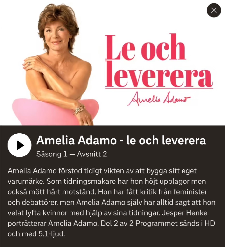 Idag har vi sett klart den fascinerande dokumentärserien om Amelia Adamo.