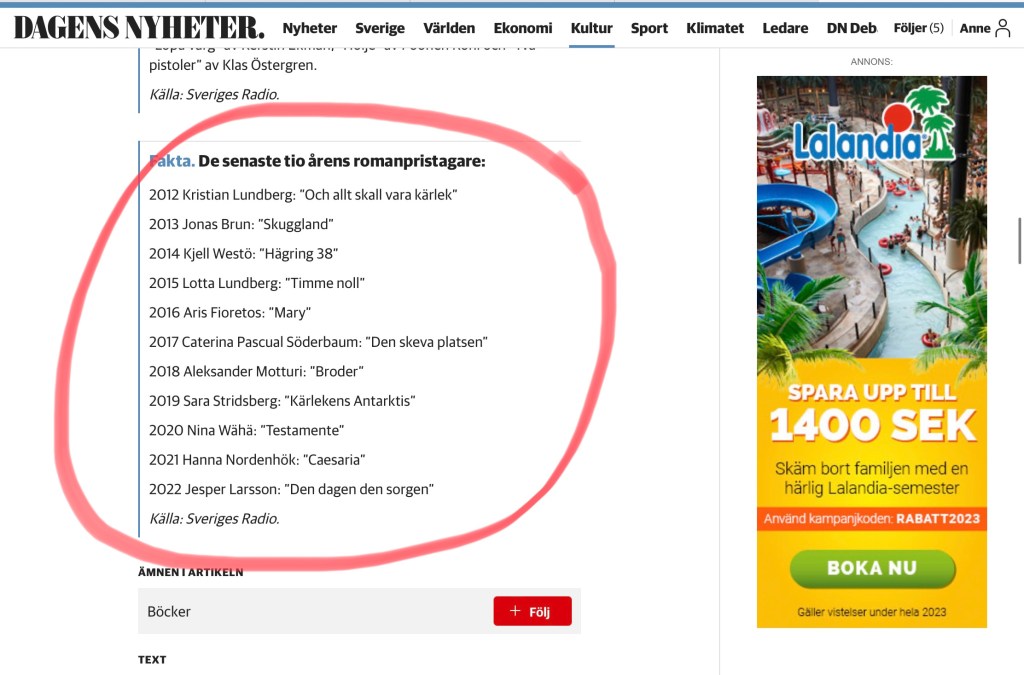 De senaste veckorna har jag gett mig på att läsa några av de böcker som har vunnit Sveriges Radios romanpris. ”Hägring 38” var lysande, men ”Den skeva platsen” fick jag ge upp redan efter några sidor.