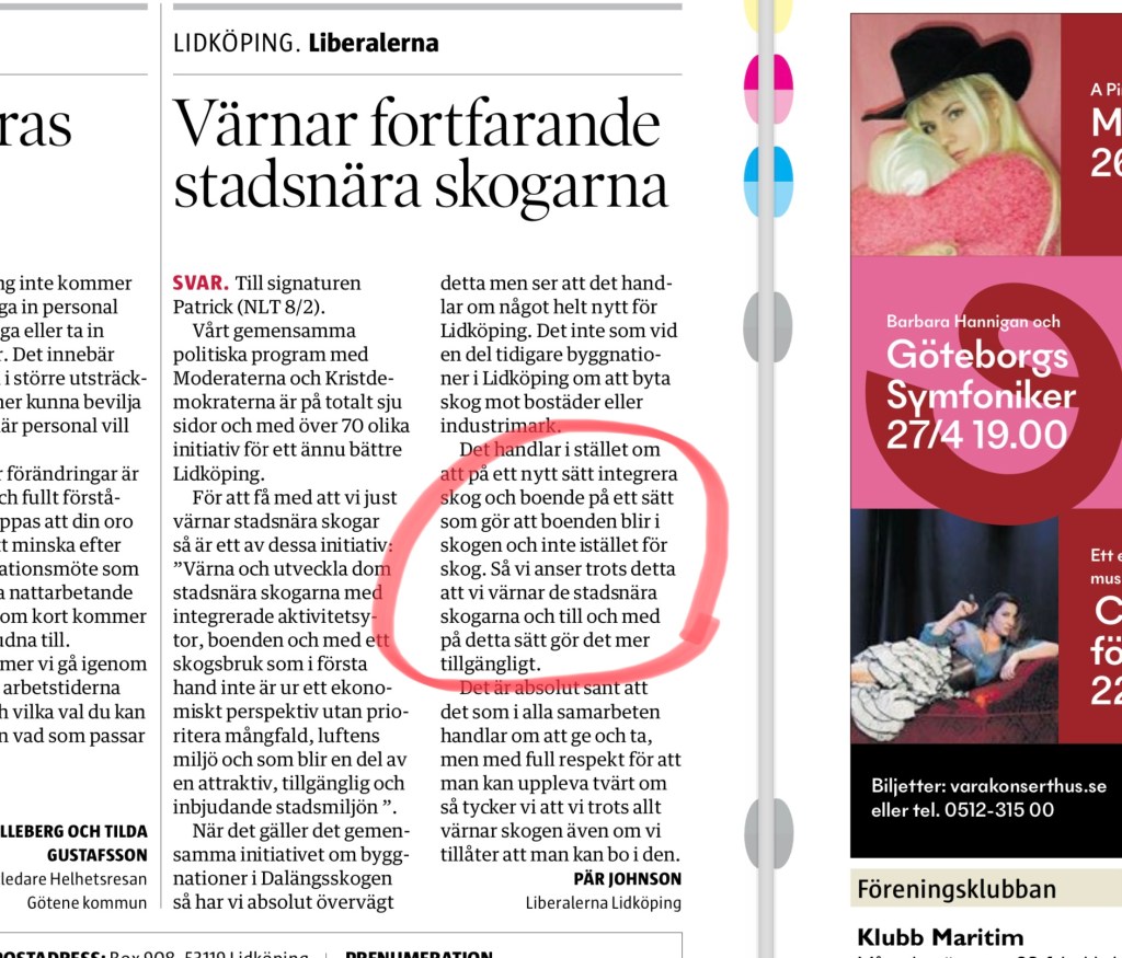 Ity ingen normalt funtad människa hävdar att man skyddar stadsnära skog genom att i denna låta uppföra stora hus med tillhörande gator och parkeringsplatser.