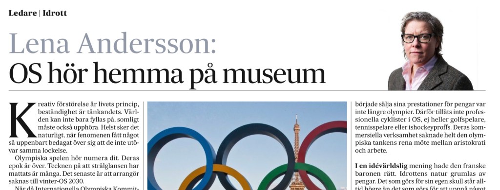 Olympiska spelen hör numera dit. Deras epok är över. Tecknen på att strålglansen har mattats är många. Det senaste är att arrangör saknas till vinter-OS 2030.”