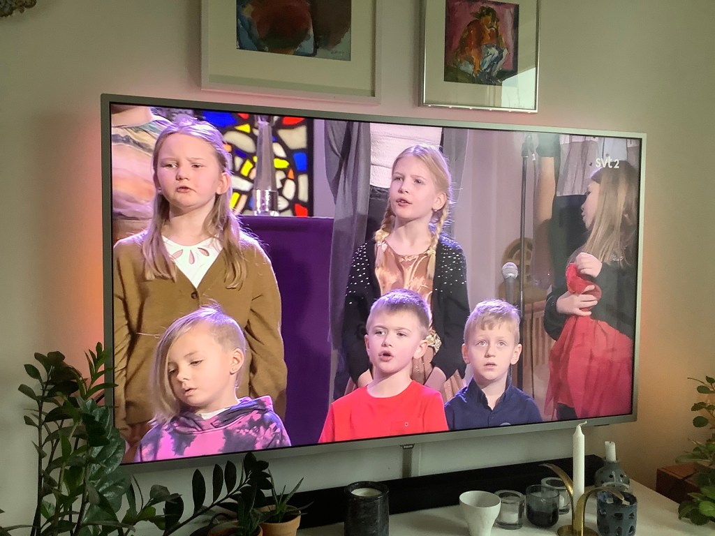 Idag sändes (barn)gudstjänsten från Hässleholms kyrka. Och medverkade i den duktiga barnkören gjorde vårt barnbarn Lisa🙂