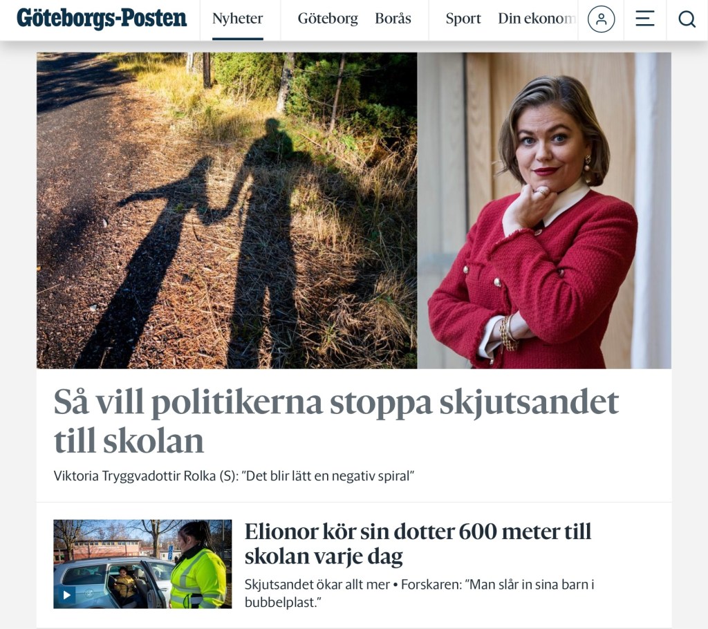 Den som väntar på lokalbussen vid Stenhammarskolan blir varse detta samhällsproblem. Inte ens de bistra ekonomiska tiderna reducerar skjutsningsgalenskapen.