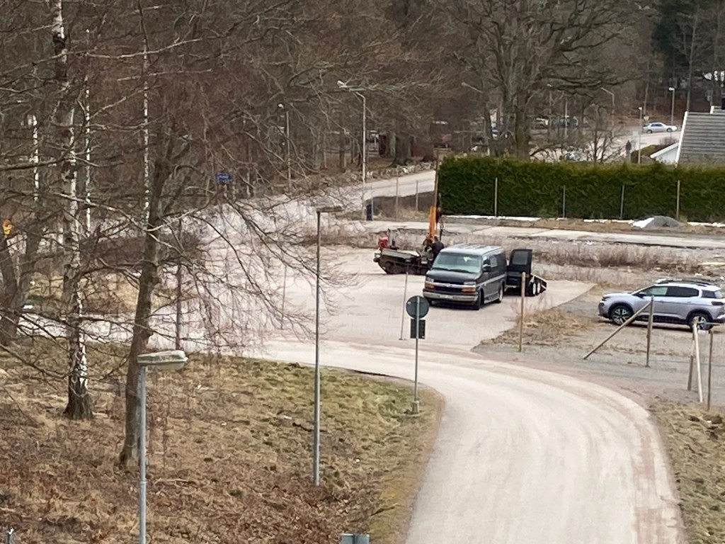 Det borras redan för fullt och stora sjok av bitumen-stinn asfalt omger arbetsplatsen.