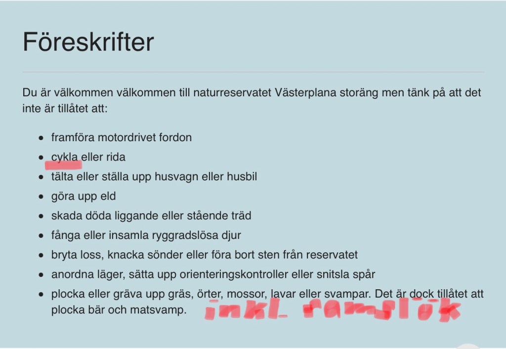 Såsom varande vän av ordning frågade jag gänget varför de cyklade på Storängen. De uppgav då att de hade tagit sig in via den nya Blombergsleden. Och där den leden leder in i reservatet finns det inga föreskrifter uppsatta.