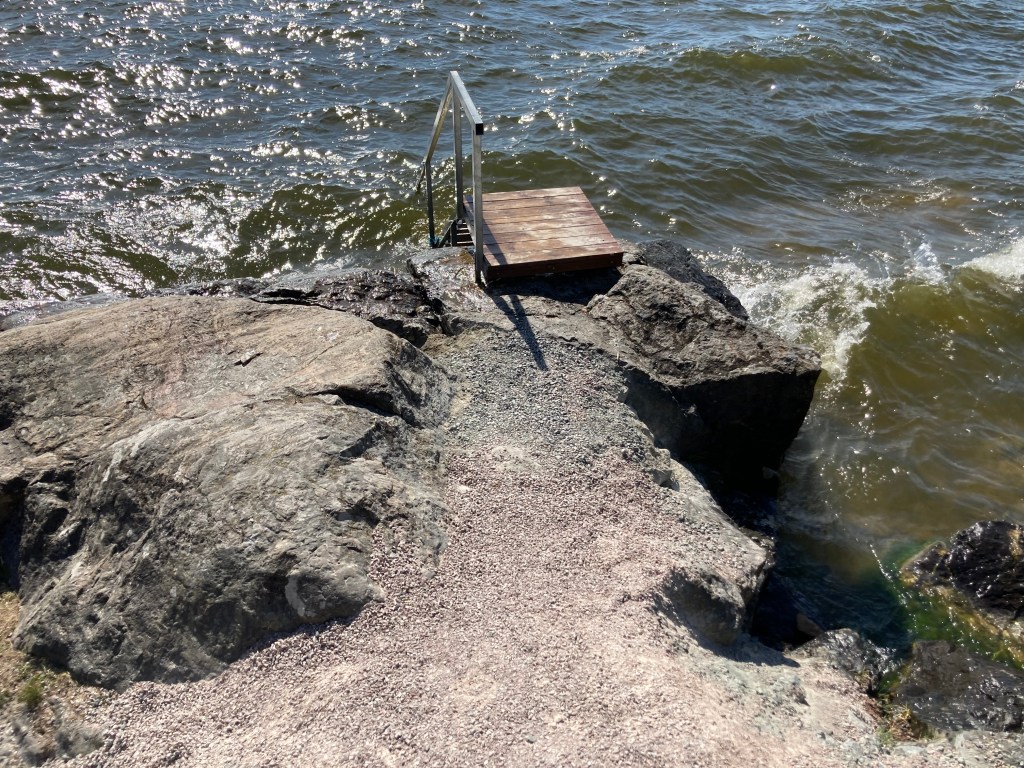 Det behövs faktiskt en stabil träspång, med tillhörande räcke – och en livboj🛟
