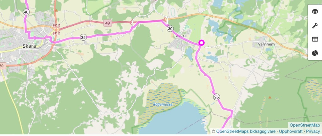 Fokus på etappen mellan Bjällum och Planteringen i Skara: