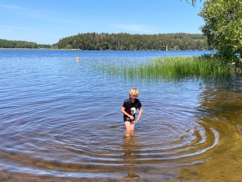 Några vikingar (eller troll) syntes inte till, men Erland tvekade inte att kasta sig i Mälarens lågtempererade vatten.