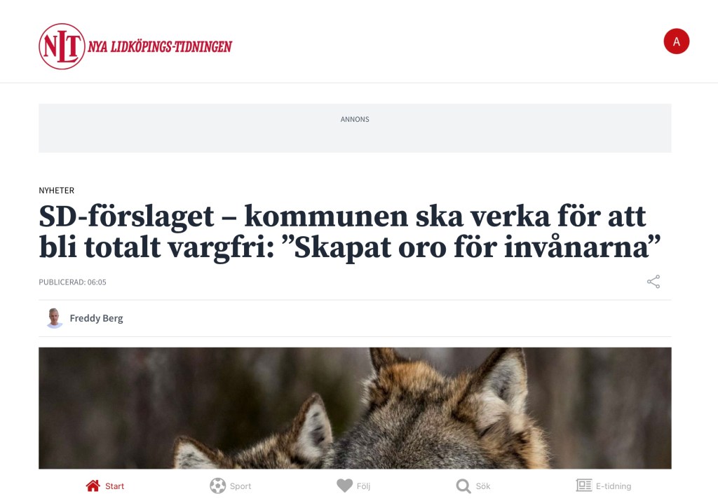 SD vill att Skara skall bli vargfritt.
