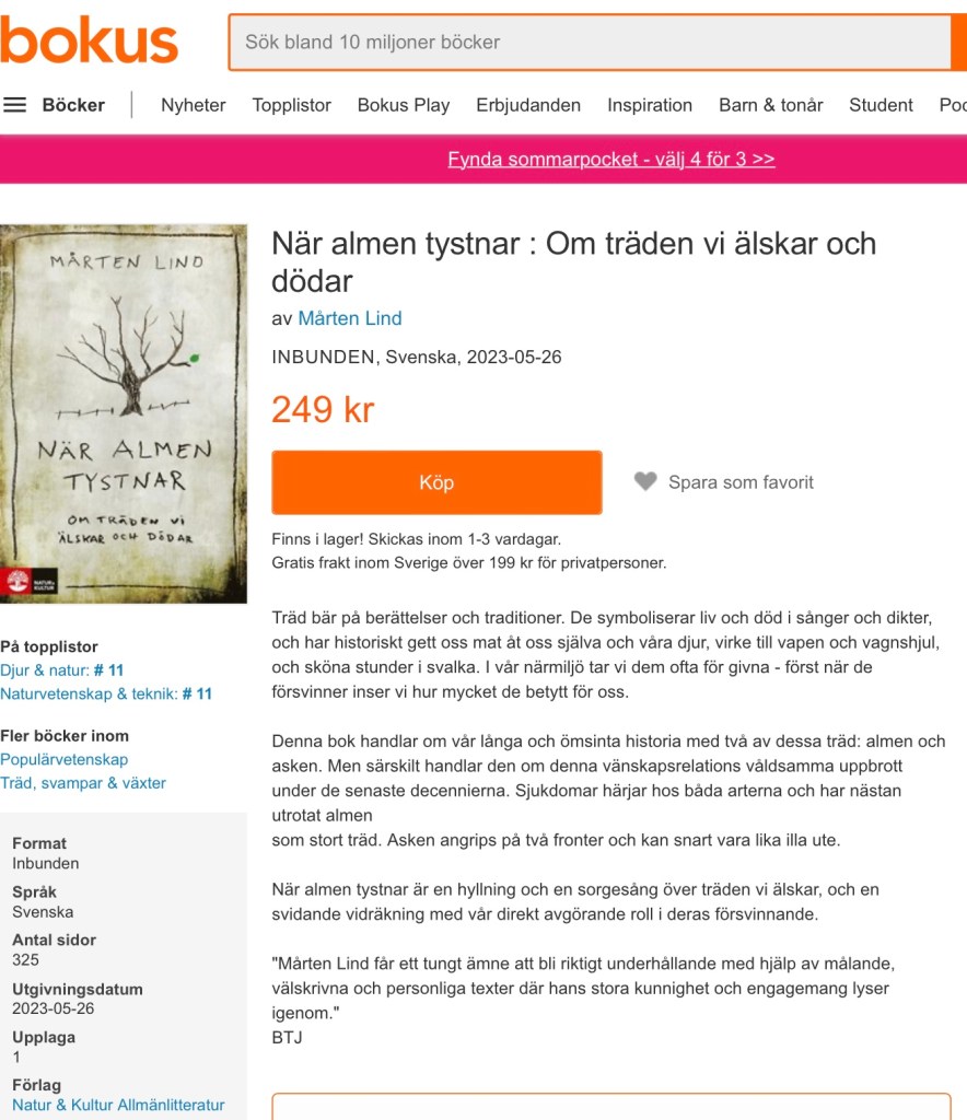 Boken ”När almen tystnar” har redan varit på tapeten här i bloggen, men det är först nu som läsningen av boken har påbörjats.