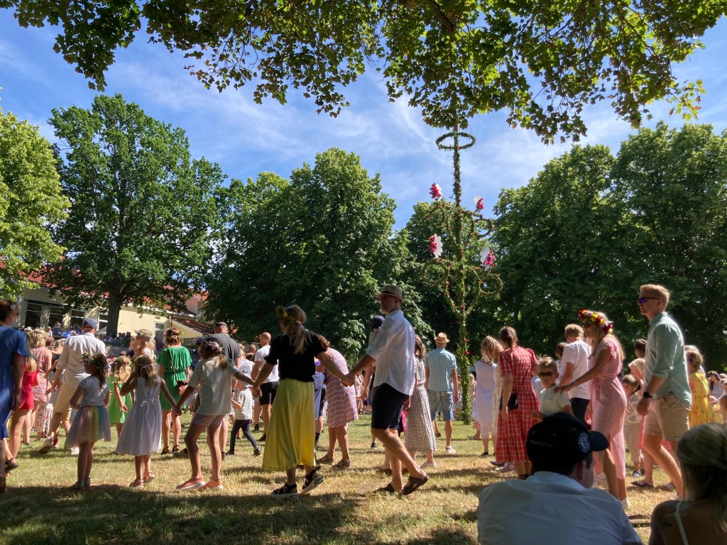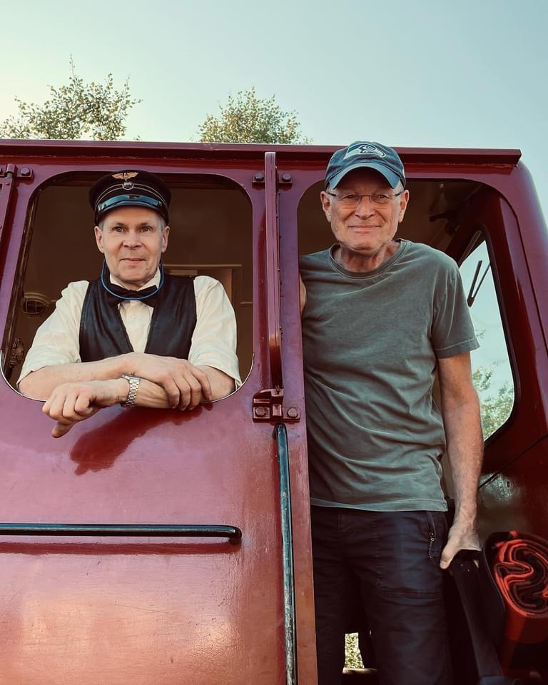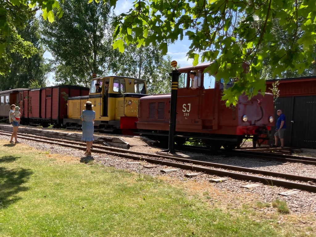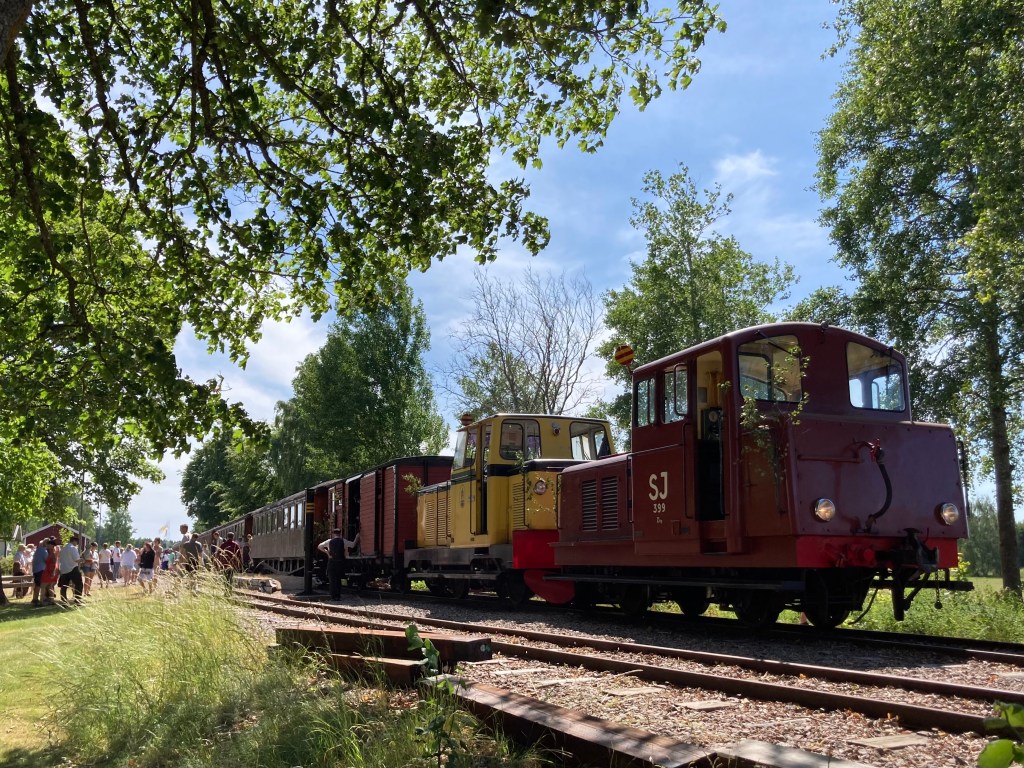 Lundsbrunns kurort är en oslagbar plats att fira midsommar på. Och ännu trevligare blev det när min kusin Jerker dök upp. Han var en av lokförarna på de två loken som drog det nio vagnar långa tåget från Skara – med hela 360 passagerare! Jerker har ett mångårigt engagemang i Skara-Lundsbrunns Järnvägar och har bl.a. totalrenoverat den godsvagn som syns efter loken. Det arbetet tog fem år i anspråk. Och det är inte den enda järnvägsvagn han har återställt i ursprungligt skick. Snacka om kulturgärning!!