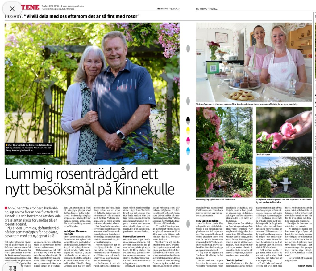 Det är däremot riskfritt att träda in i den mycket vackra rosenträdgård som är belägen nedanför kalkstenskleven. Där finns även ett trevligt café. NLT har ett reportage i dagens tidning: