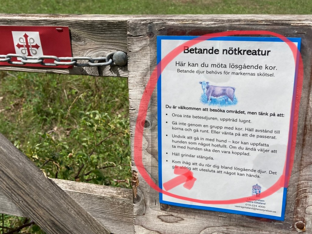 Den varningen får man när man går in på vandringsleden vid Martorp. Och den är säkert helt befogad!