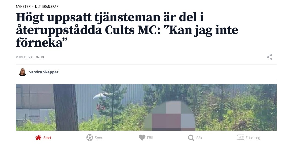 Sandra Skeppar på NLT uträttar storverk! Hon gör en enastående insats som granskare av de kriminella MC-gäng som nu etablerar sig i Lidköping. https://www.nlt.se/2023/07/19/hogt-uppsatt-tjansteman-ar-del-i-ateruppstadda-cults-mc-kan-jag-inte-forneka-9e919/ Dela det här: Dela på X (Öppnas i ett nytt fönster) X Dela på Facebook (Öppnas i ett nytt fönster) Facebook Gilla Laddar in … Relaterade