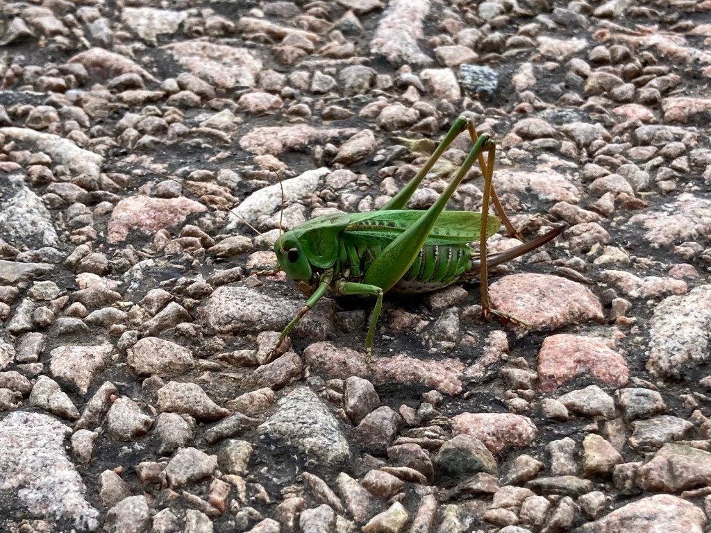 Den här vårtbitaren såg vi idag, sittande mitt på landsvägen mellan Västerplana och Martorp: